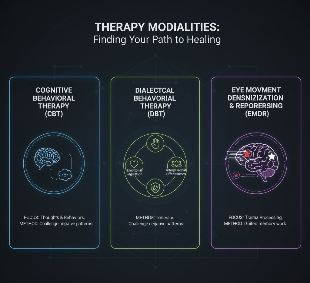 When you start therapy, you may hear terms like the following. These are proven frameworks that a mental health therapist uses to help you build lasting change: