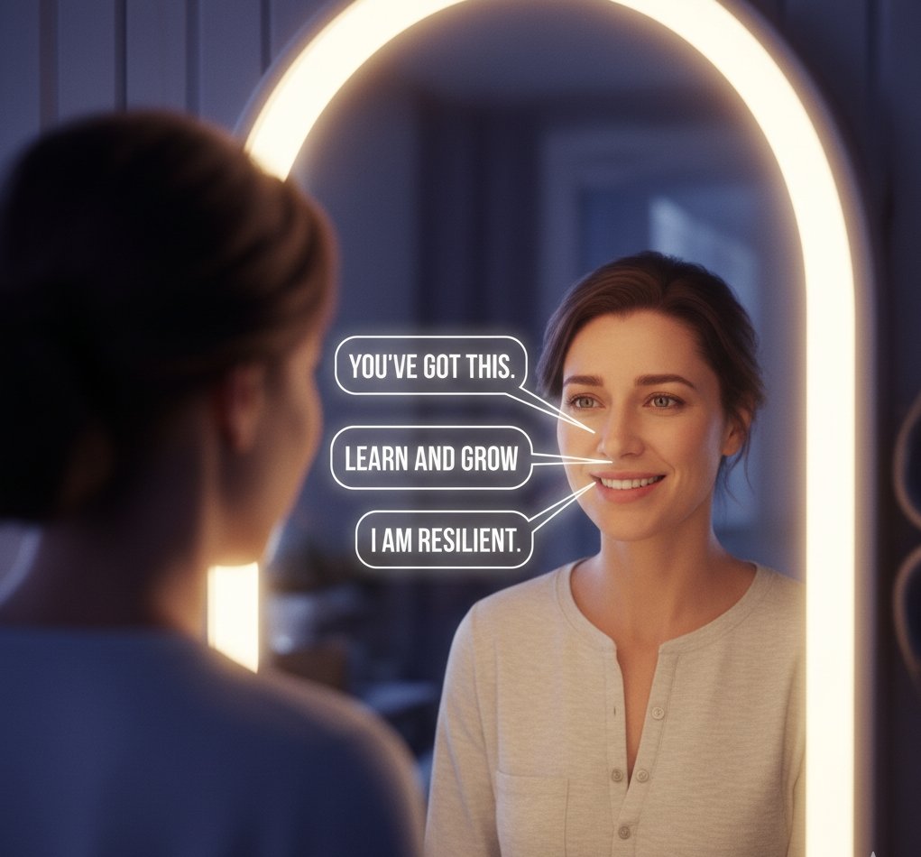 importance of learning from failure instead of fearing it. To operationalize this, practice reframing. When a goal is missed or a challenge is overwhelming, ask these questions instead of defaulting to self-criticism: